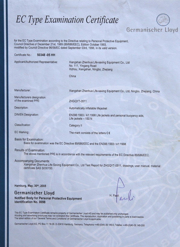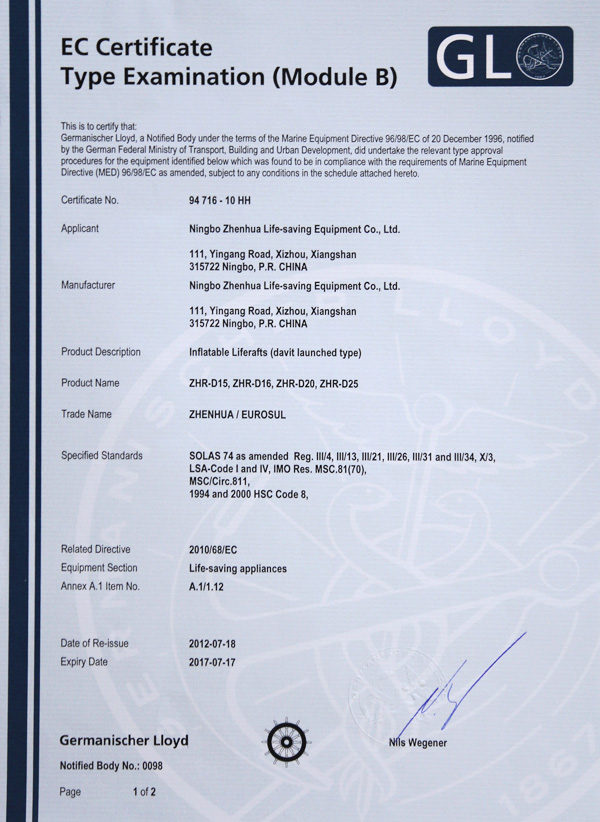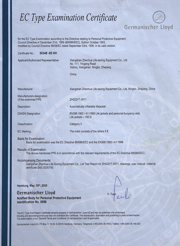 ავტომატური გადაუდებელი გასაბერი მაშველი